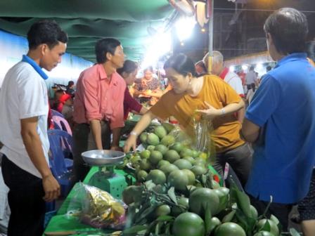 Có 40 gian hàng của 76 đơn vị tham gia. Các sản phẩm được bày bán tại phiên chợ gồm: trái cây (xoài, nhãn, cam xoàn, mận, dưa lê, dưa lưới v.v.); rau, củ, nấm; lương thực, thực phẩm (gạo, mè, đậu, tôm, cá, trứng v.v.); thực phẩm chế biến từ nguyên liệu nông sản (xoài sấy, thanh long sấy, sen sấy, bánh phồng tôm, bột v.v.). Đây là các sản phẩm nông sản sạch, an toàn của các hợp tác xã, tổ hợp tác, câu lạc bộ, hộ nông dân; các doanh nghiệp, cơ sở sản xuất, kinh doanh các mặt hàng lương thực, thực phẩm chế biến trên địa bàn tỉnh.
