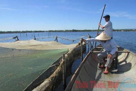 Mô hình nuôi cá chẽm trên phá Tam Giang đang mang lại hiệu quả kinh tế cao cho các ngư dân xã Quảng Lợi (Quảng Điền, Thừa Thiên Huế).