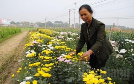 Tương tự, xã Thái Đào (Lạng Giang) - vùng hoa lâu năm cũng có 26 ha hoa các loại, tập trung tại 3 thôn: Then, Ghép, Đồ, tăng 6 ha so với năm trước. Năm 2014, giá trị thu nhập bình quân mỗi ha hoa của xã đạt hơn 200 triệu đồng. Tại huyện Việt Yên, để mở rộng diện tích, UBND huyện trích ngân sách 130 triệu đồng hỗ trợ xây dựng mô hình trồng hoa ly, cúc, lay ơn tập trung hơn 8 ha tại xã Nghĩa Trung, đưa tổng diện tích hoa toàn huyện lên gần 20 ha.