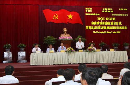 Sáng ngày 5/7, các Bộ: Nông nghiệp Phát triển Nông thôn, Công Thương, Ngân hàng Nhà nước cùng Ban Chỉ đạo Tây Nam Bộ và TP. Cần Thơ phối hợp tổ chức Hội nghị bàn giải pháp tháo gỡ khó khăn, thúc đẩy sản xuất, tiêu thụ lúa, gạo và thủy sản vùng Đồng bằng sông Cửu Long năm 2013.