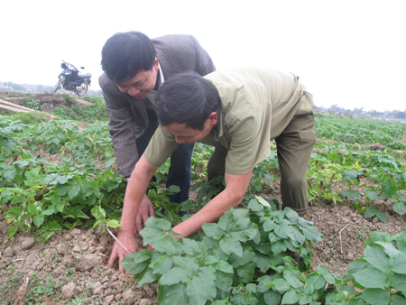 Vụ đông xuân vừa qua, ông Diêm Lập Trọng- Trưởng thôn Sậm, xã Tân Thịnh (Lạng Giang, Bắc Giang) đã mạnh dạn mượn hơn 16 mẫu ruộng để trồng khoai tây. Ông được Công ty Tân Nông - một doanh nghiệp chuyên thu mua, chế biến khoai tây ký hợp đồng đặt hàng một số lượng lớn khoai tây. Với việc sản xuất có hợp đồng từ trước như thế, riêng trong vụ đông xuân vừa qua, ông Trọng đã "kiếm" được 300 triệu đồng. Vụ tới, ông sẽ tiếp tục ký hợp đồng để trồng 10ha khoai.