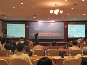 Ngày 30/10, tại Hà Nội đã diễn ra Hội thảo công bố kết quả Đánh giá tác động gia nhập WTO và các Hiệp định khu vực mậu dịch tự do (FTAs) đến ngành nông nghiệp và PTNT do Bộ Nông nghiệp và Phát triển nông thôn tổ chức .
