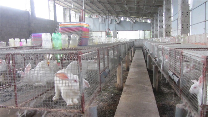 Chuồng nuôi thỏ gồm 2 ô liên kết nhau theo chiều ngang, nhiều ô liên kết theo chiều dọc, tạo thành dãy chuồng kép...