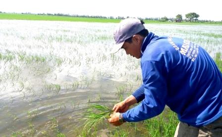 Vụ 3 này, anh Phan Công Bình ngụ ấp Thượng, xã Thường Thới Tiền xuống giống 3,7ha lúa. Sau những ngày đầu gieo sạ, lúa vẫn phát triển bình thường. Tuy nhiên, 3-5 ngày sau đó bắt đầu xuất hiện lúa non chết cây hàng loạt. Đến nay sau 3 đợt giặm sạ, diện tích này chỉ phát triển được khoảng 50% số lượng giống. Thất thoát sau 3 lần gieo sạ lại là gần 15 triệu đồng. Hiện tại, anh Bình đành chăm sóc mảnh ruộng thưa thớt lúa để gỡ gạt chi phí.