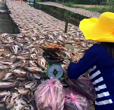Khô chủ yếu được làm thủ công phơi dưới ánh nắng mặt trời nên con khô giữ được mùi vị thơm ngon. Khách du lịch đến đây thường mua vài ký về làm quà cho người thân, bạn bè.