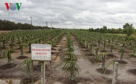Do hiệu quả kinh tế cao nên hiện nay, nông dân vùng Đồng Tháp Mười, thuộc huyện Tân Phước, tỉnh Tiền Giang đã mở rộng diện tích trồng cây thanh long dưới chân ruộng đến hàng trăm ha.