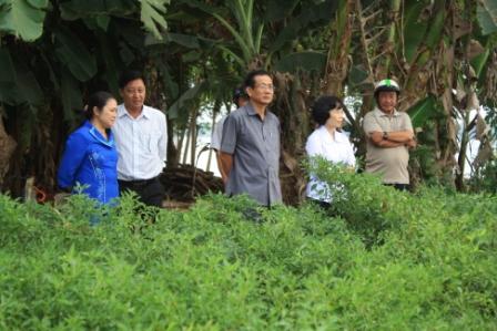 Đoàn đã đến thăm vùng canh tác ớt Cù lao Tây và lò sấy ớt của doanh nghiệp tư nhân Thanh Tân, xã Tân Quới.