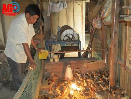 Không chỉ riêng ông Hiệp, mà nhiều hộ Khmer trong xã Châu Lăng cũng chọn mô hình nuôi gà ta thả vườn. Từ năm 2015, ông Chau Sóc Phú bắt đầu nuôi 300 con gà. Ông Phú nhận định, vấn đề con giống là yếu tố quyết định nên những đợt nuôi gần đây, gia đình ông thường chọn gà giống từ Tiền Giang hay Bến Tre. Theo ông, mô hình nuôi gà thả vườn không khó, quan trọng là phải thường xuyên kiểm tra, tiêm ngừa đầy đủ cho gà để phòng, chống một số bệnh như: Thương hàn, dịch tả, tụ huyết trùng, đặc biệt dịch cúm H5N1. Cùng với đó, vườn thả gà cần được khoanh lưới để đảm bảo gà không tiếp xúc với mầm bệnh bên ngoài. Sau mỗi đợt xuất chuồng, phải tiến hành vệ sinh vườn và rải vôi bột khử trùng, để vườn trống khoảng 1 tháng mới thì bắt đầu thả gà cho vụ nuôi kế tiếp. “Lứa gà vừa rồi định canh ngay dịp Tết Nguyên đán để bán có giá hơn nhưng năm rồi thời tiết thất thường quá, gà bị bệnh thất thoát gần 30%, tính ra không có lãi. Rút kinh nghiệm đợt rồi, tôi sẽ chủ động hơn cho đợt kế tiếp. Sắp tới đây, tôi sẽ lập đàn mới để tiếp tục mô hình này” - ông Phú nhấn mạnh.